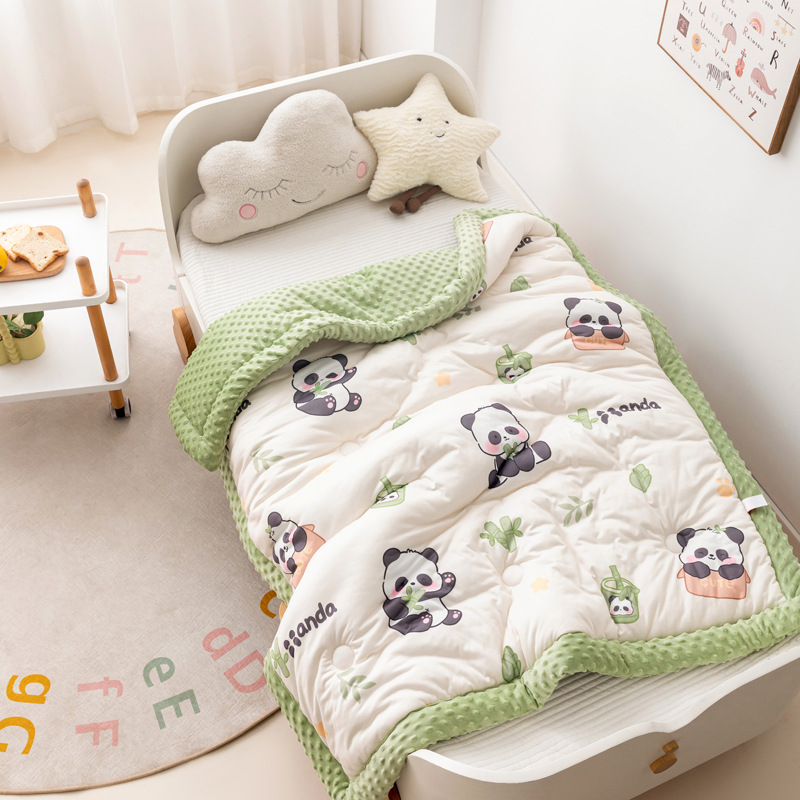 2024 新ニット綿ビーンズベルベットキルト 100*120 センチメートル 1.0kg 冬キルトパンダパラダイス
