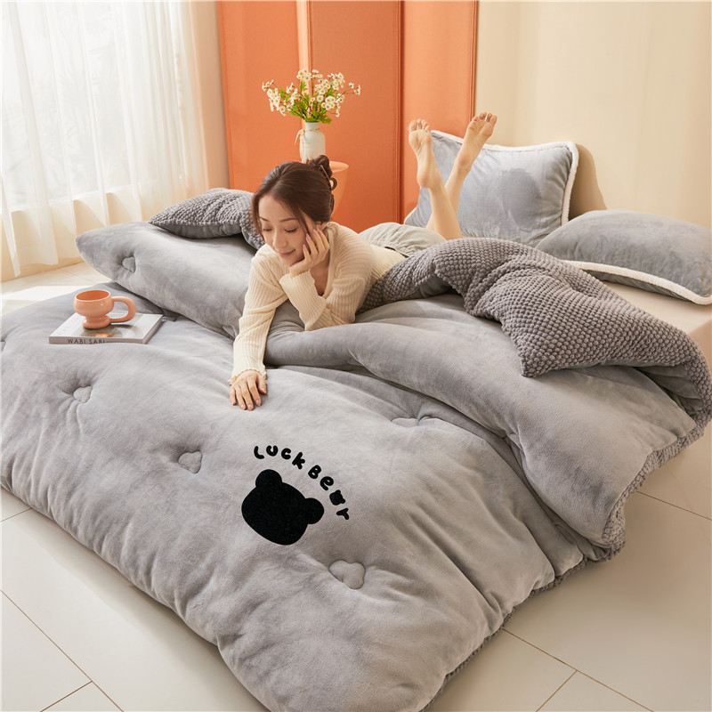 無地の羽毛ベルベット綿冬用掛け布団、ダブルサイズ、蓄熱性、家庭用、同じスタイル、保温掛け布団、ギフト、団体購入、ビデオ番号、代発送