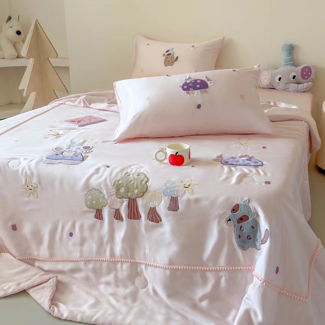 シングル・ダブル サマーキルト 冷感テンセル エアコンキルト 4点セット かわいいカードセット 刺繍 洗濯機で洗える ピンク ガーリーハート