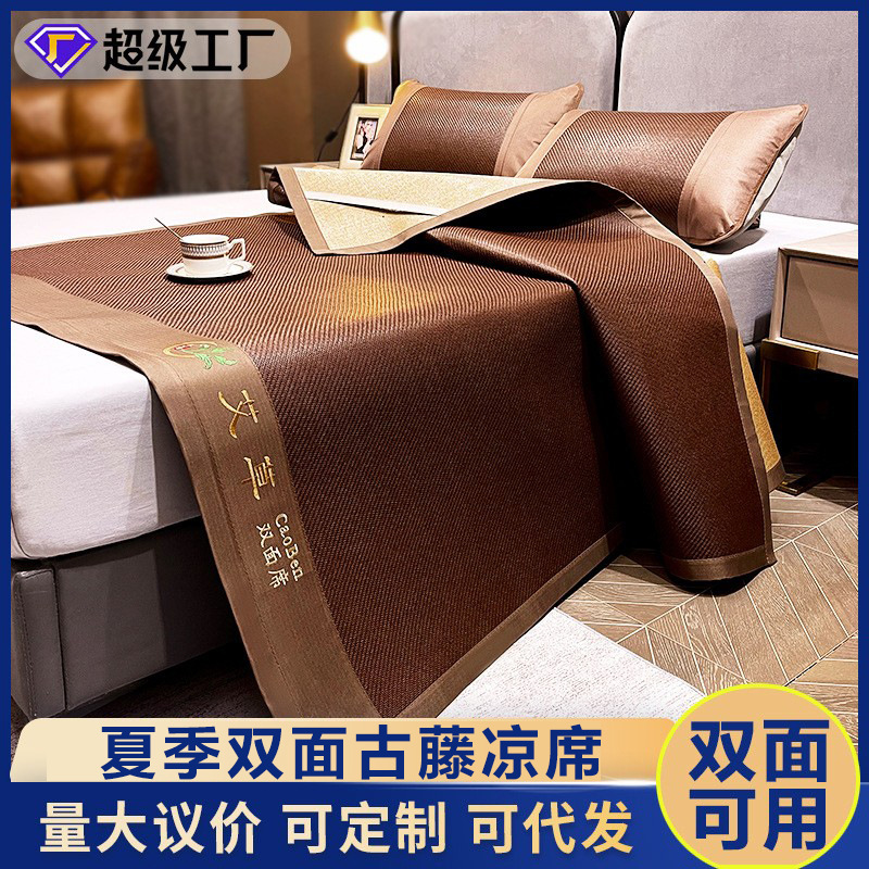 メーカー卸売り艾草藤席ベッド用品夏家庭用氷糸凉席三点セットシングル二人寮畳
