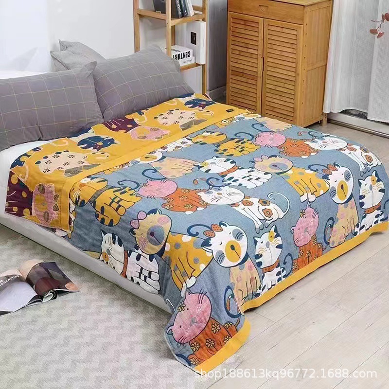 純綿多層ガーゼタオル布団毛布1.5*2メートル水洗綿柔らかい快適な成人夏の昼寝毛布