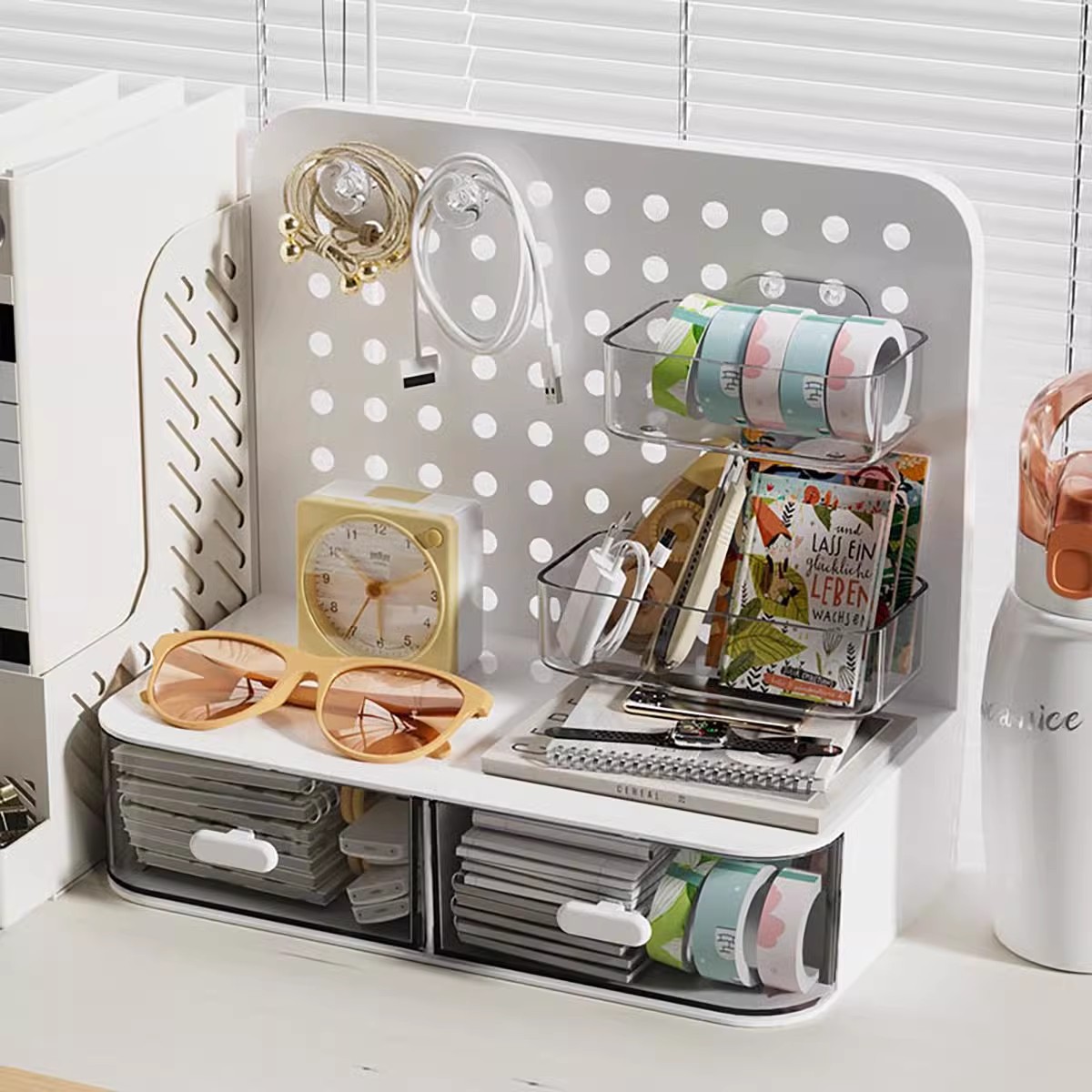 大容量の穴の板の引き出し式の文房具の収納箱の寮の机のinsの風の置物の棚は穴を開けないで事務室を作ります。