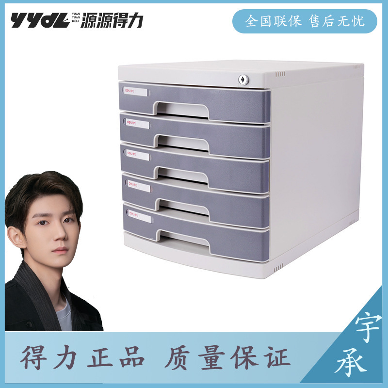 Deli有力ファイルキャビネット8855デスクトップ資料整理収納キャビネットプラスチック引き出しキャビネットオフィス文房具ロック付き