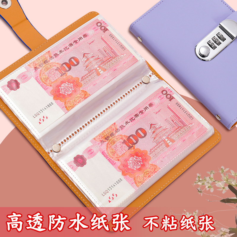 2025年新型金庫ロック式現金貯金帳、貯金簿、財務管理財布、大容量収納帳