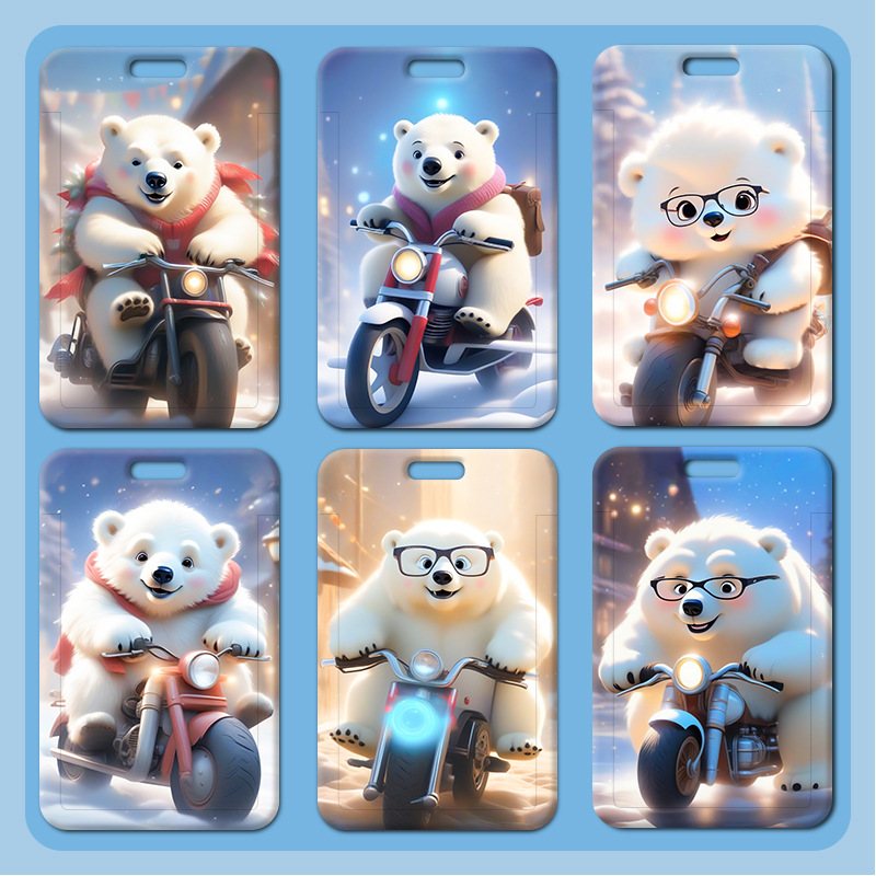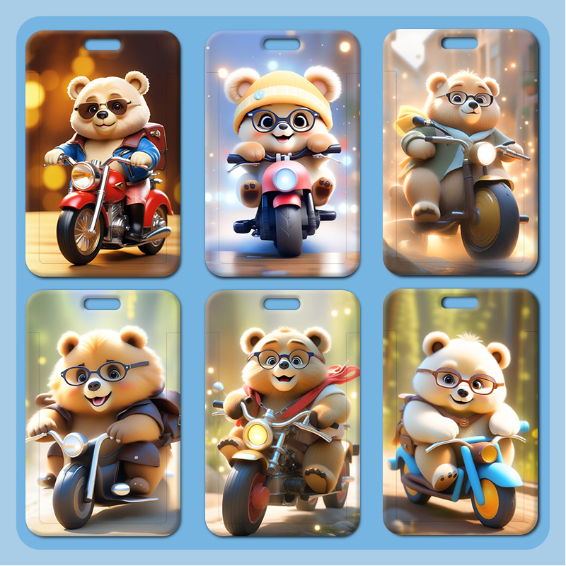 オートバイと熊のカードセットの卸売りのプラスチックのスライドカバーの学生の学校の札の食事カードの胸の札の小さい漫画の仕事の証明書のカードセットの門限