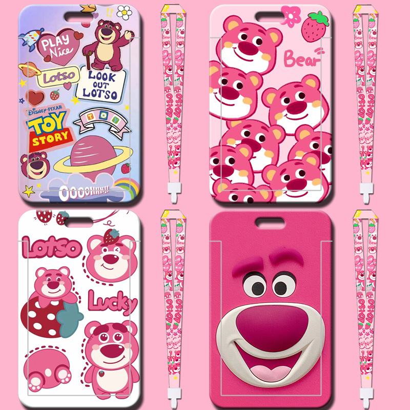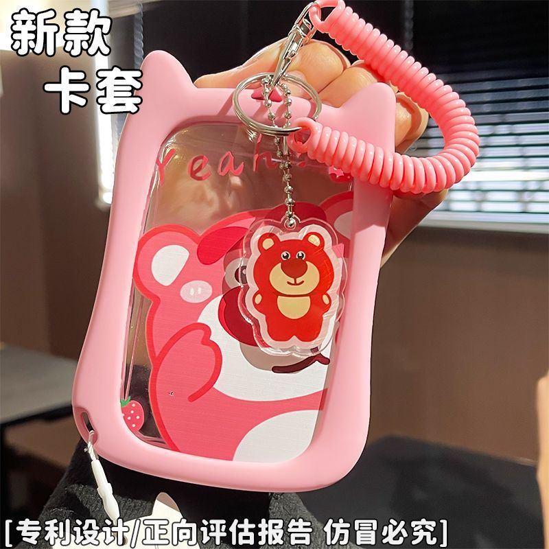 いちご熊キャンパスかわいいカードセット学生食事カードバス入退室カード証明書ストラップ保護男女スプリングロープ
