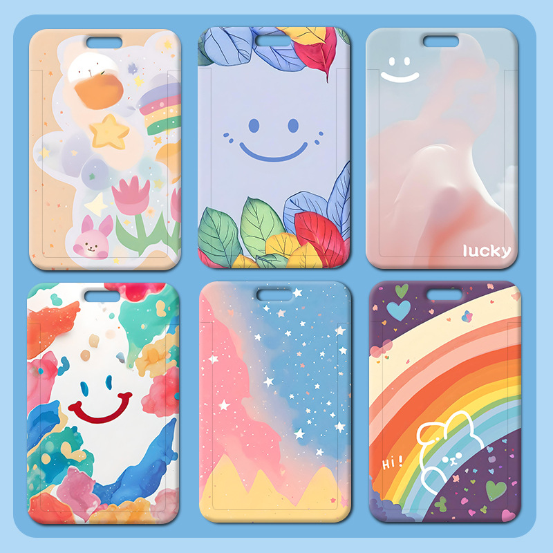 虹の熊のカードカバーの卸売りのプラスチックのスライドカバーの学生の学校の札の食事カードの胸の札の小さい漫画の仕事の証明書のカードカバーの門限