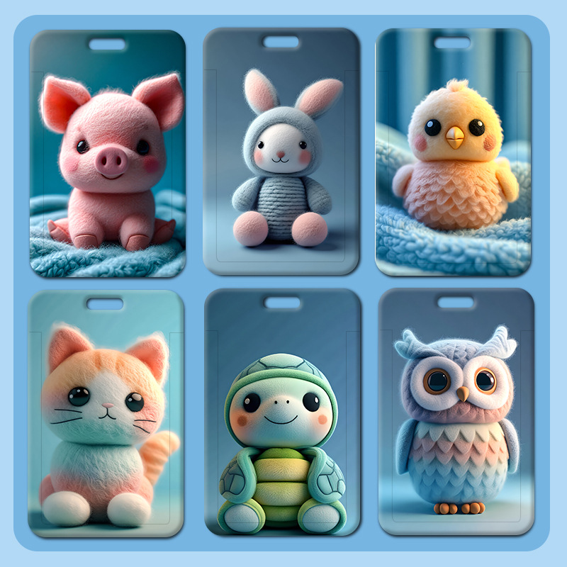 ぬいぐるみのカードのセットのプラスチックのスライドカバーの学生の学校の札の食事カードの胸の札の漫画の仕事の証明書のカードのセットの門限のins風