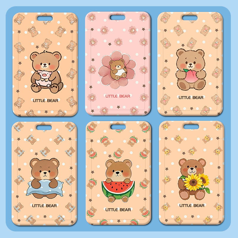 落第熊カードセット卸売りプラスチックスライドカバー学生学校カードの食事カードのバッジカードの仕事証カードセットの門限バス