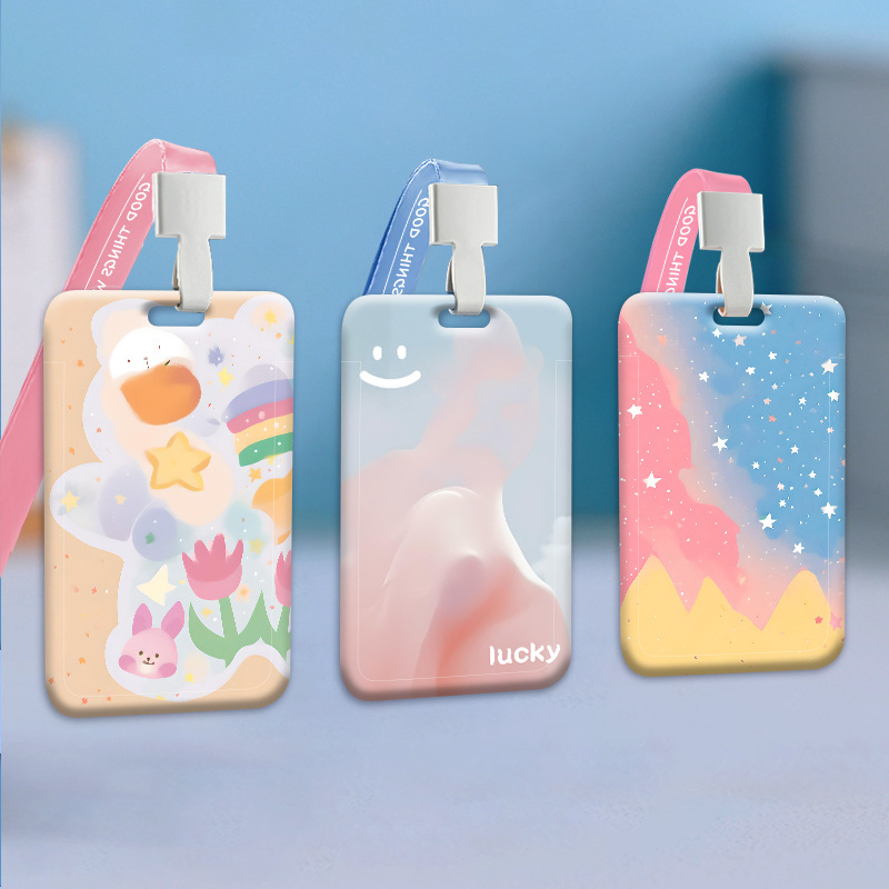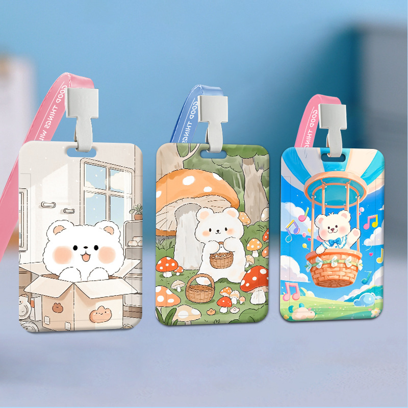 かわいい風の創意の工牌の学生の食事カードの乗車の交通のドアの禁止カードは紐を掛けてuv印刷のlogoカードのカバーができます。