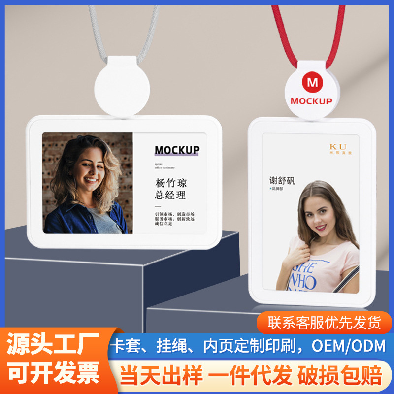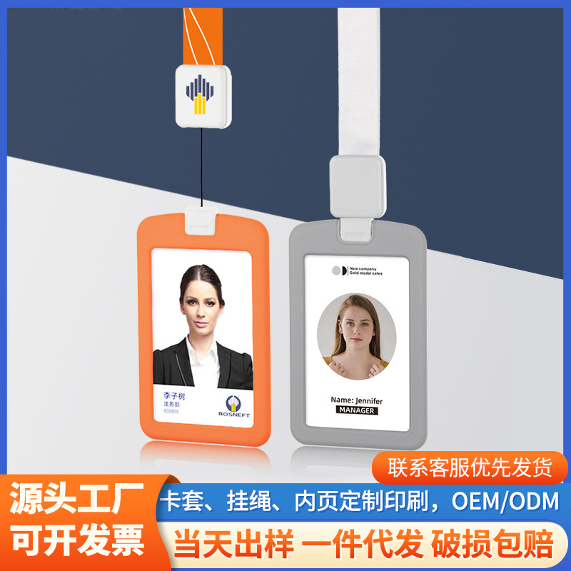 秋雨メーカー直販証明書カードカバー従業員胸カード伸縮ダブルカード両面透明プルバックカードカバー