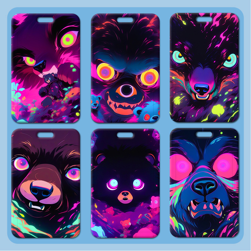 熊塞博朋克カードセットキャンパスカード学生学校カードバスカード作業証食事カード保護カバードア禁止カード証明書