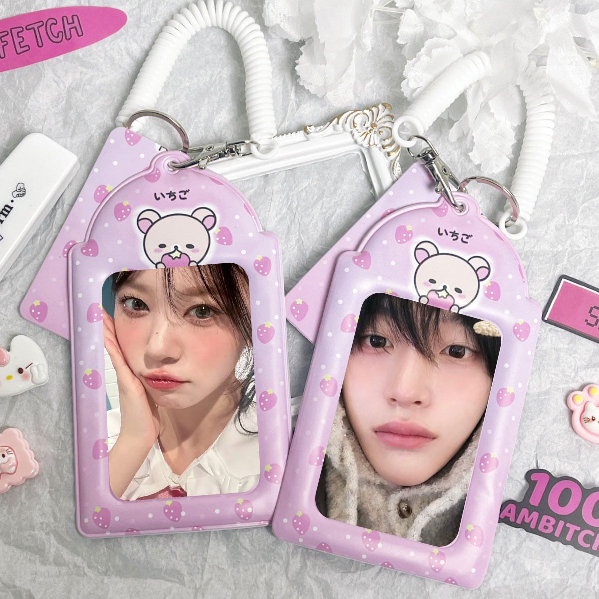 国境を越えたオリジナルかわいいいちご熊皮質PVC三寸追星愛豆小カード学校カードカバーストラップ収納