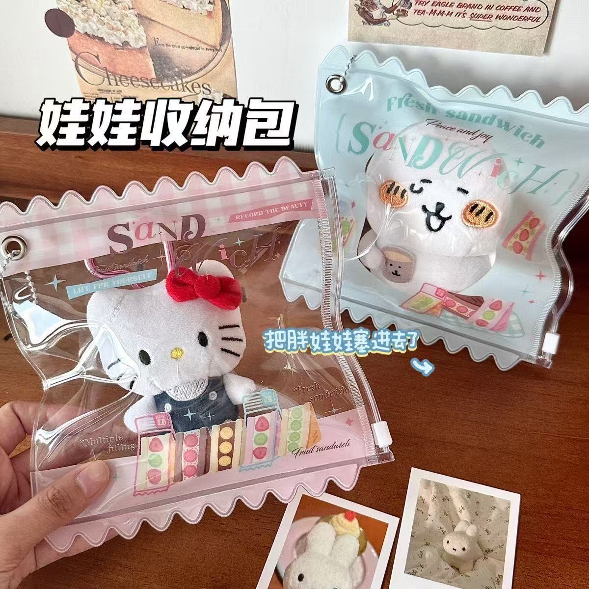 オリジナルinsかわいいサーモン人形キャンディー袋ジッパー袋防塵外出人形バッグ透明収納袋ストラップ