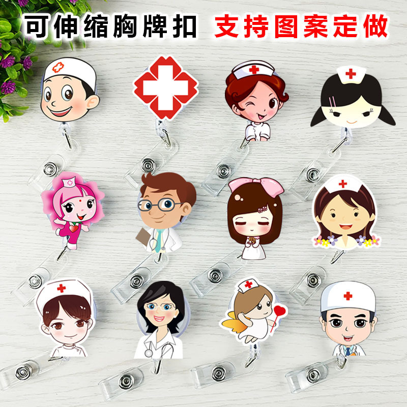 新しいかわいい韓国ファッション漫画イージーピックアップバックル従業員証明書バッジホルダードキュメント伸縮バックルバッジホルダー卸売
