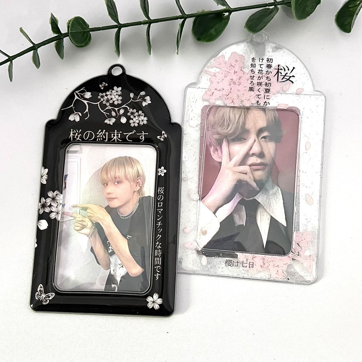 Pvc桜カードケースins風追星愛豆3インチ小カードキャンパス食事カード収納カードバッグ創意展示ペンダント