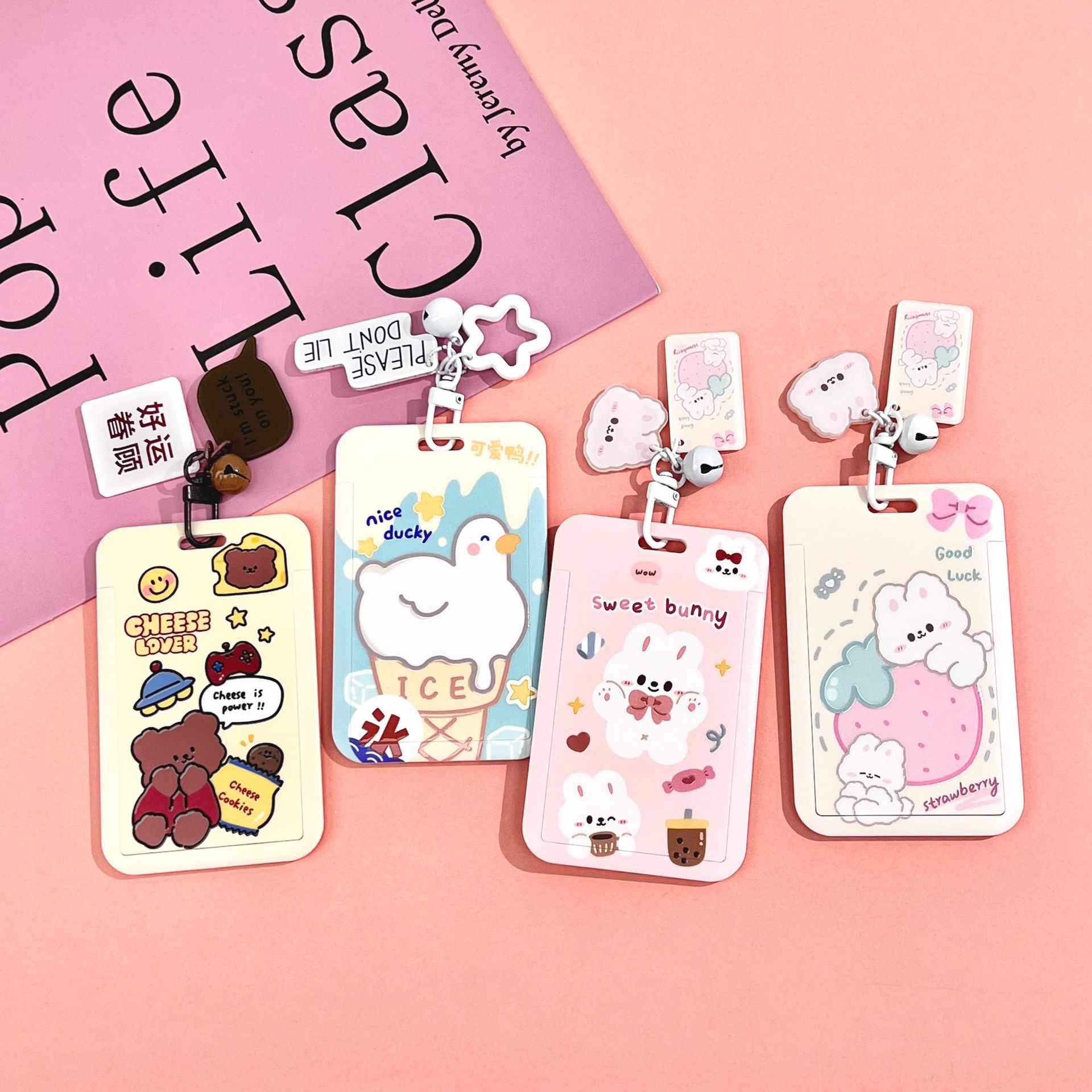 かわいい漫画のクマの学生キャンパス食事カードホルダーバスカードアクセスカード地下鉄カードスライドカバー紛失防止保護カードホルダー