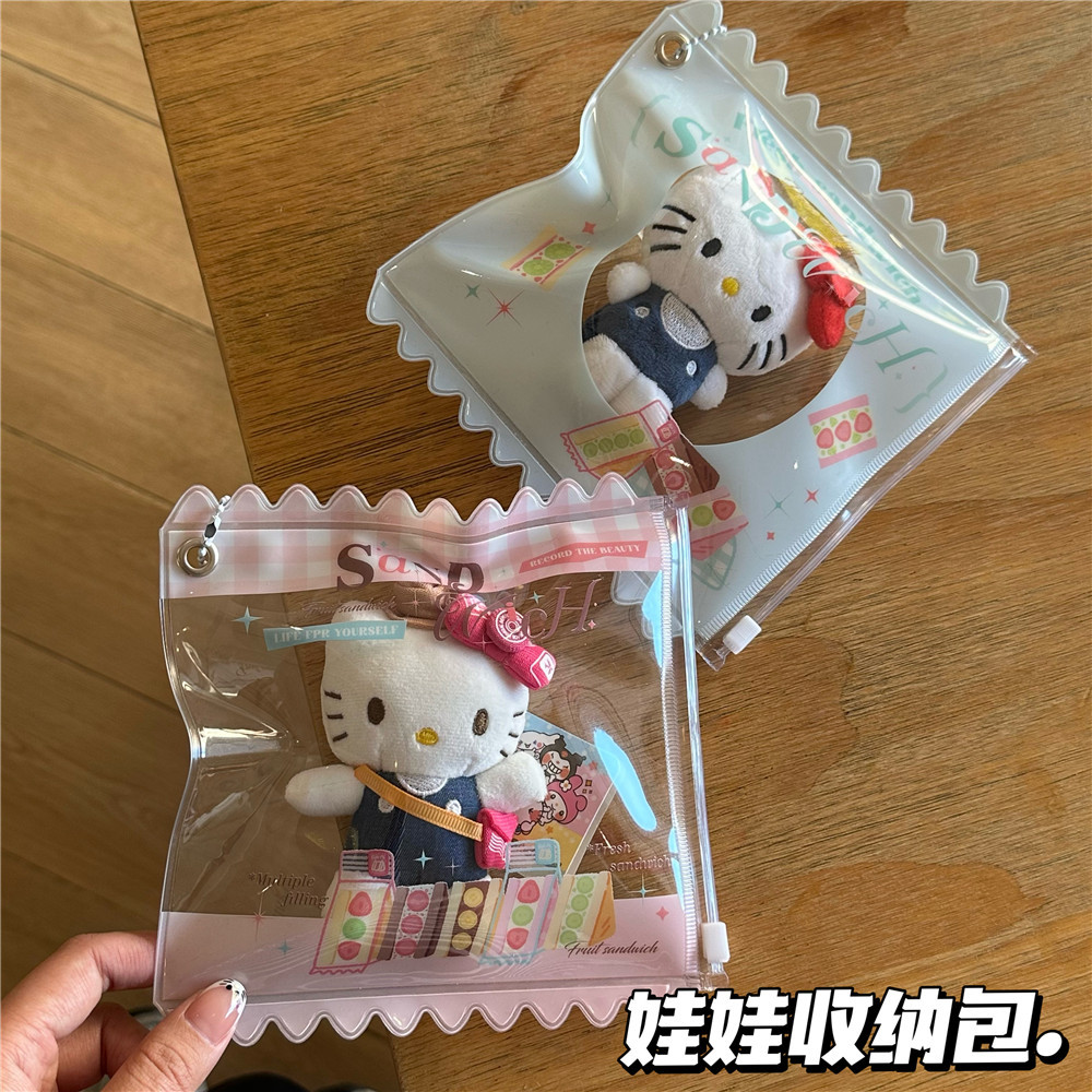 オリジナルinsかわいい趣味サーモン人形キャンディー袋ジッパー袋防塵人形バッグ透明収納袋ストラップ