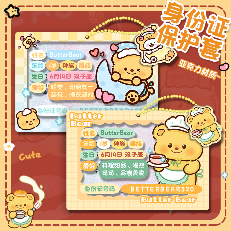 漫画バター熊アクリル身分証明書カードカバーバスカードカバー透明消磁防止証明書保護カバー