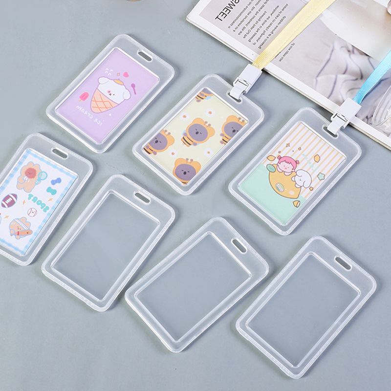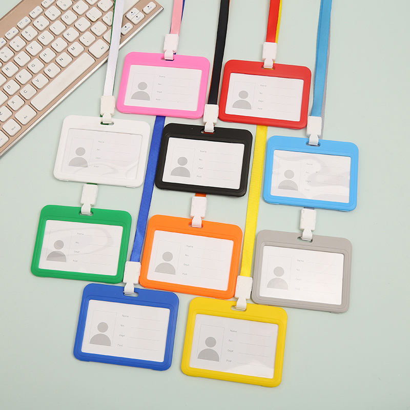 工場卸売りカラー両面透明バスカードの仕事証カードカバー学生証セット展示会証胸カードのストラップ