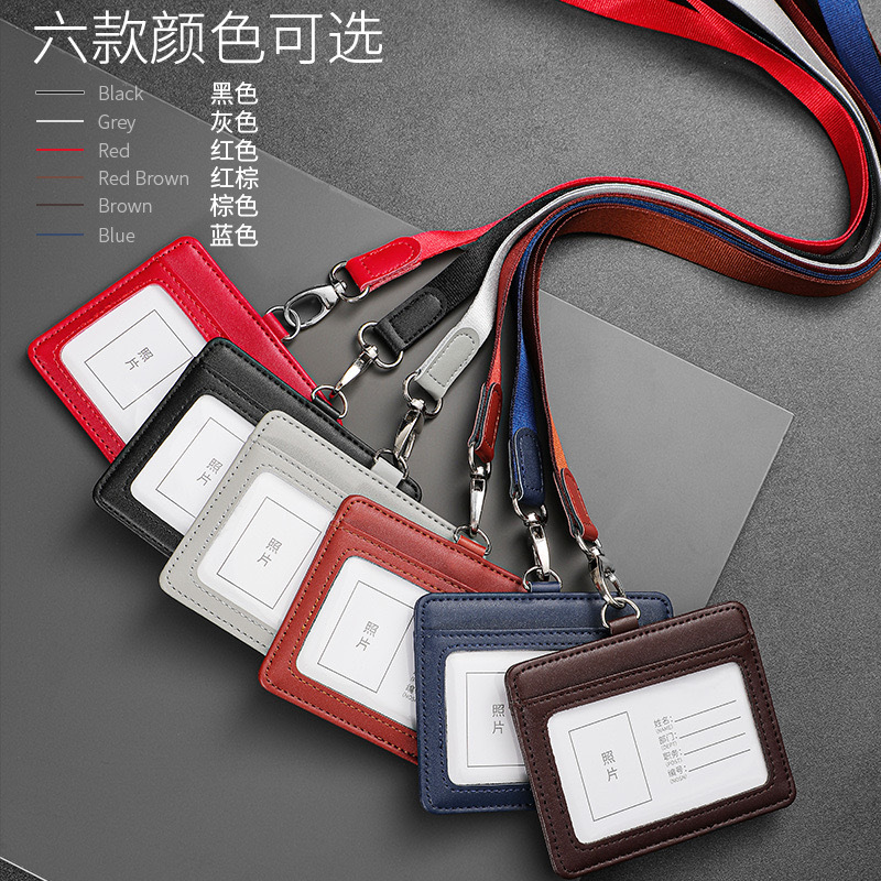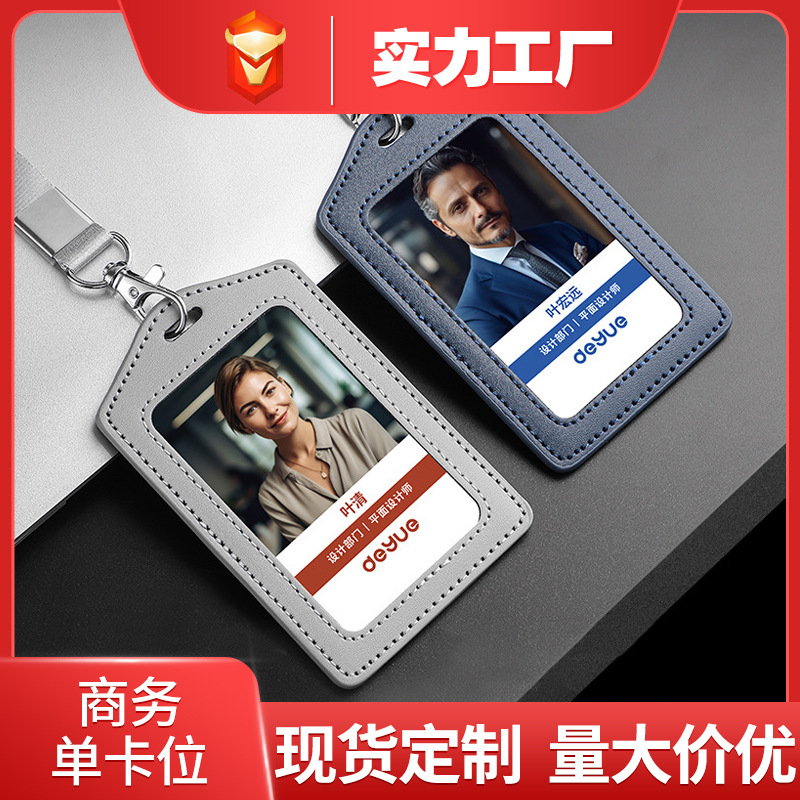 厳選された越境取引用本革製ワークカードホルダー、名札、社員証、学生証保護ケース、ストラップ付きワークカード