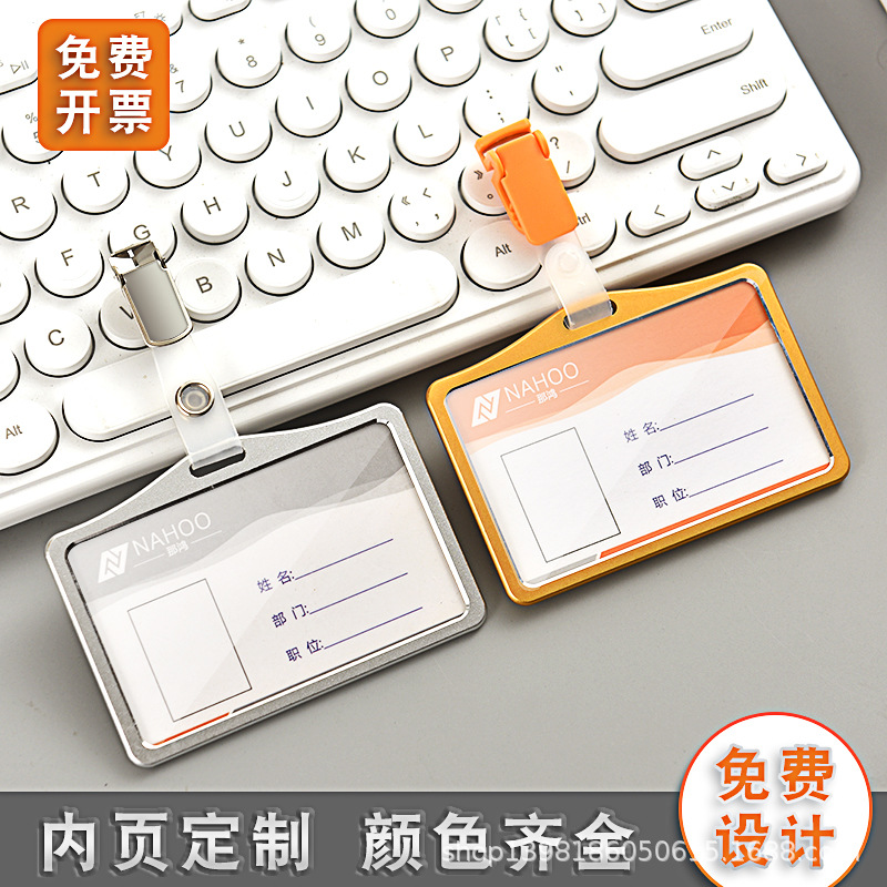Pvc両面透明ピンクリップ従業員証明書カードカバーペンダント作業証明書学生証明書胸札ブランド