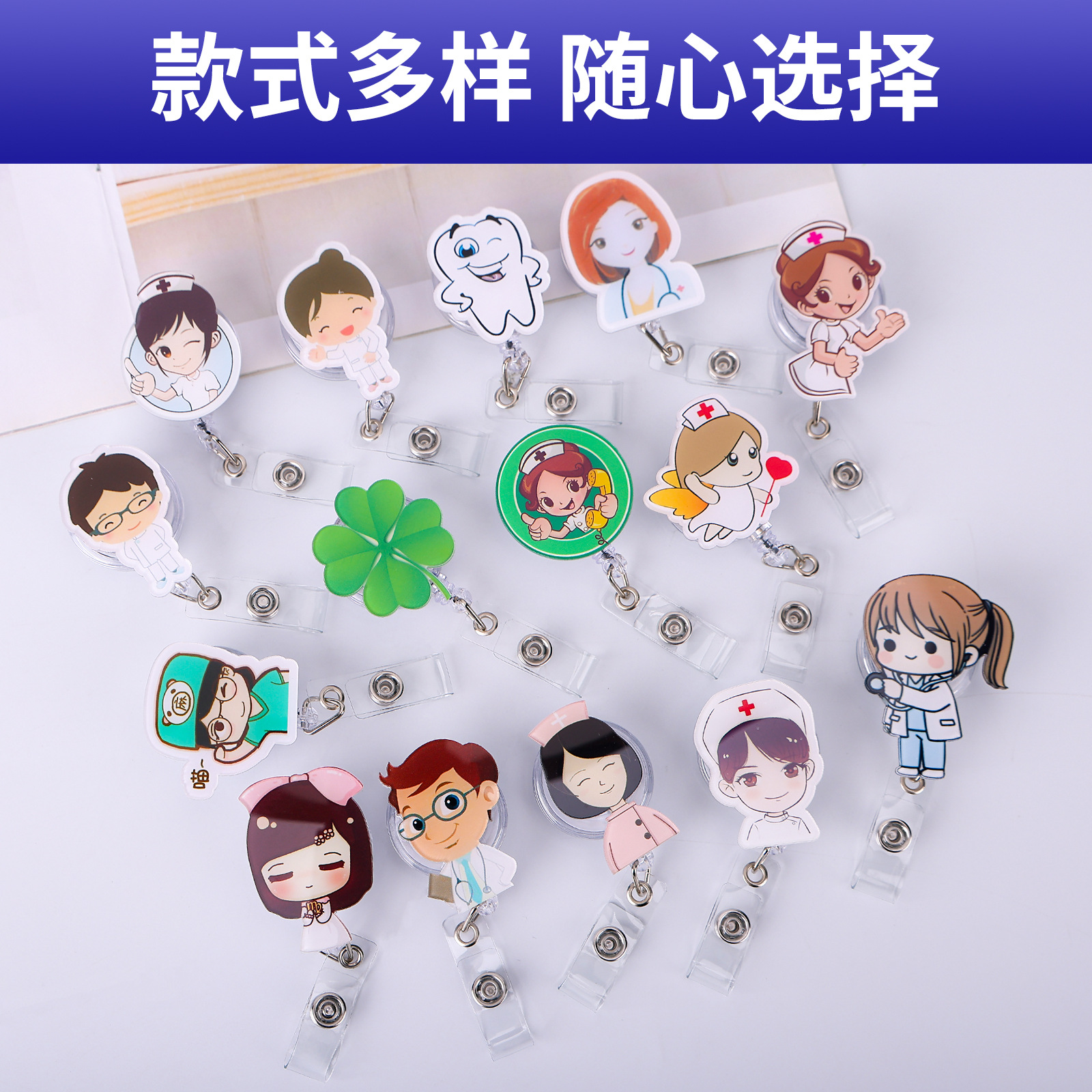 クロスボーダーの人気アクリル漫画異形バッジリールクリップ証明書カードカバー医師看護師胸カード伸縮ボタン