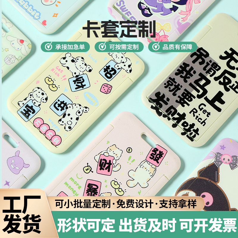 仕事証カードカバー分離ダブルカード位置折り畳み証セット従業員ブランド学生学校カードバスカードカバー伸縮ストラップ