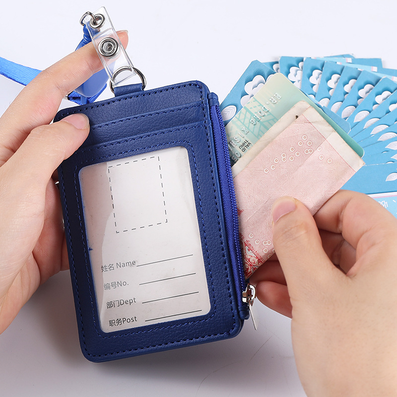 Pu仕事札カードカバージッパー付き吊り札仕事証明書カードバッグ小銭掛け紐証明書セット革カバー胸カード卸売り