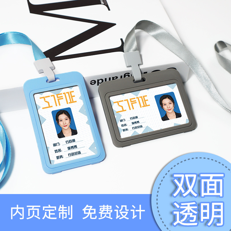 両面展示作業証カードカバーのストラップ付き胸札付き従業員の仕事札は学生の学校札をカスタマイズしてカスタマイズできる