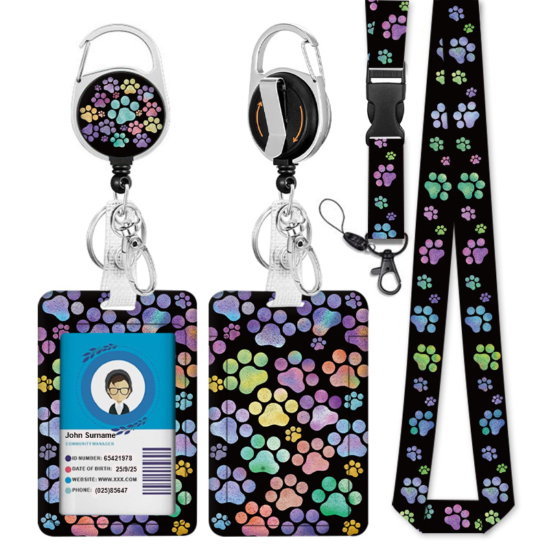 アマゾン越境UV印刷カードホルダー、伸縮自在、引き出し式、熱転写、ストラップ付き、IDカードホルダー、バッジホルダー