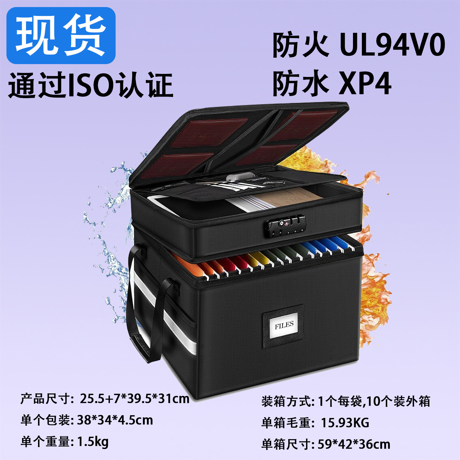 黒耐火二層ボックス ファイルボックス パスポート収納ボックス 収納ボックス 税関ロック付き フォルダーなし Sanjiu スポット