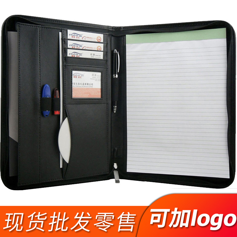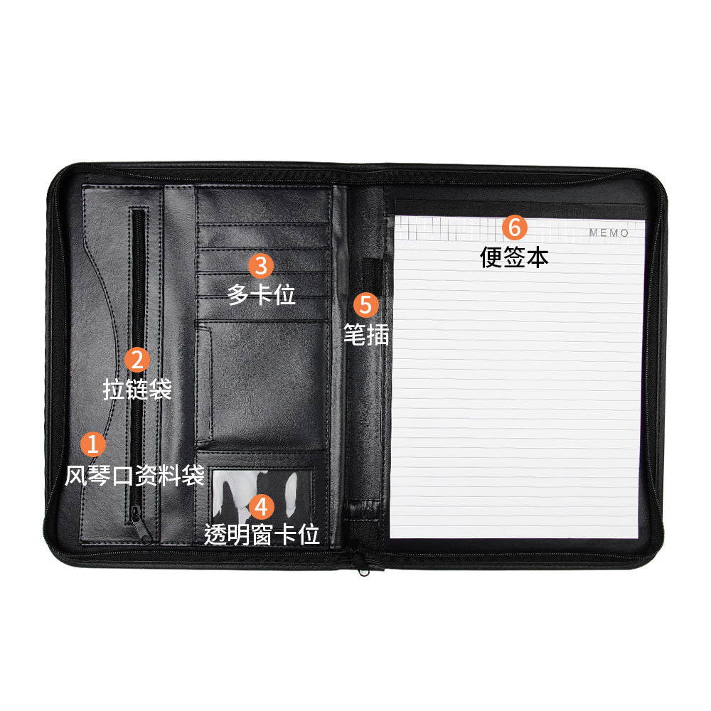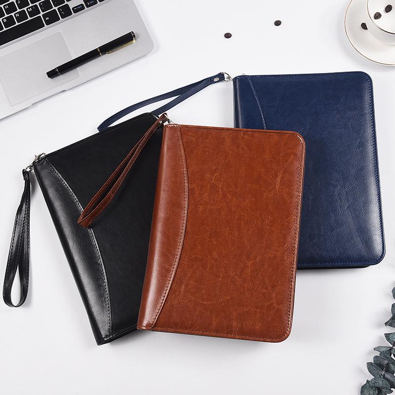 新しい A4 多機能ファイルバッグビジネスオフィスマネージャーフォルダーレザーフォルダーメモパッドジッパー文具バッグ