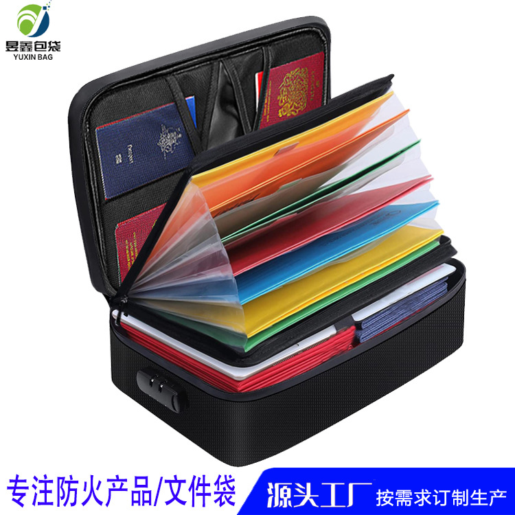 黒防火ファイルファスナー付き財布防水収納バッグ耐高温難燃ファイルバッグカスタマイズサンプル
