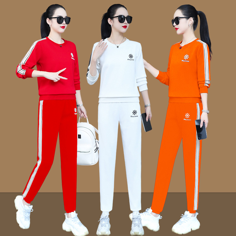 カジュアルスポーツスーツ女性2023春秋新型ファッション減齢気質ガーディアン広場舞丸襟長袖ランニング