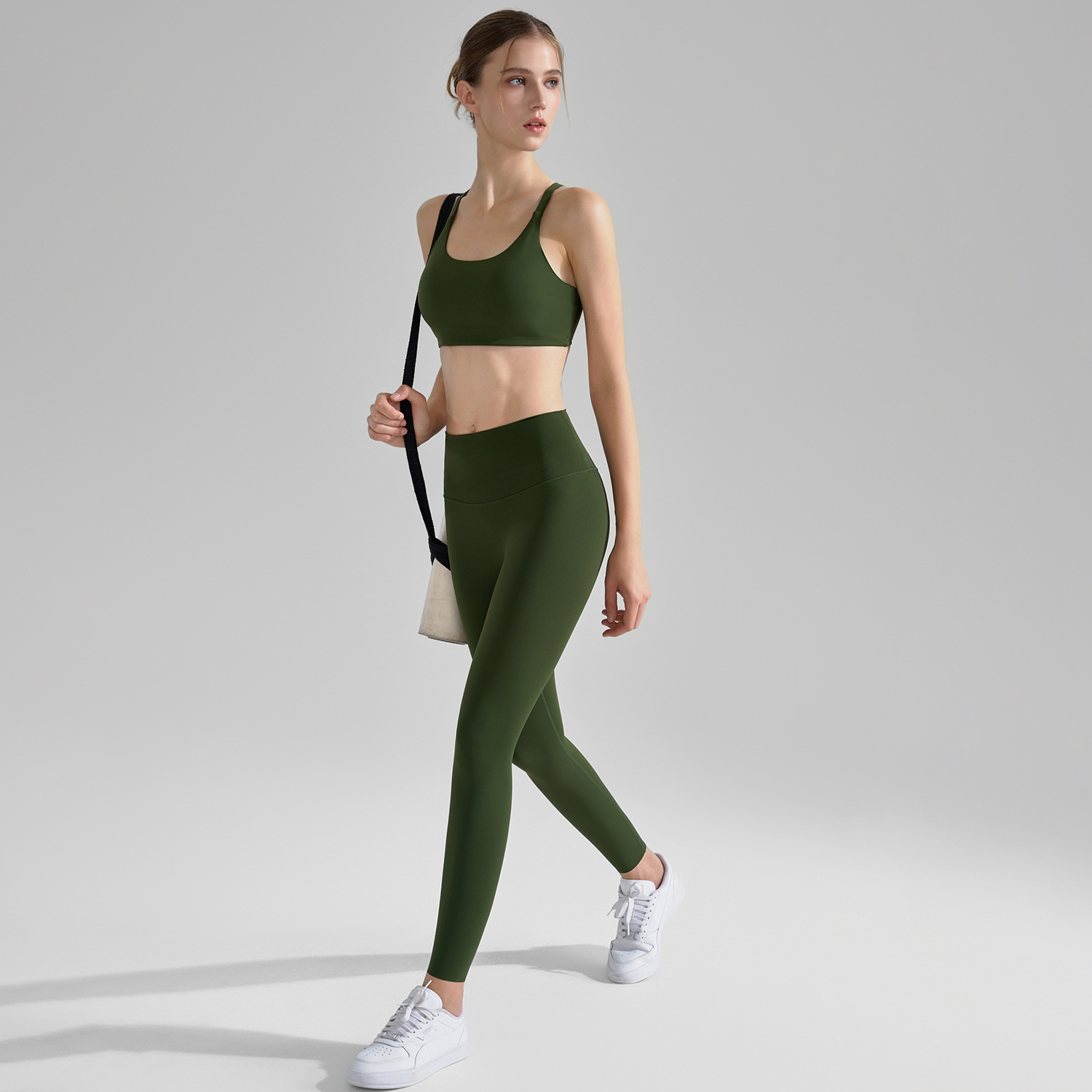 フィットネススーツ レディース 2点セット ヌードクロスバックサスペンダーヨガベスト カール防止Tラインヨガパンツ