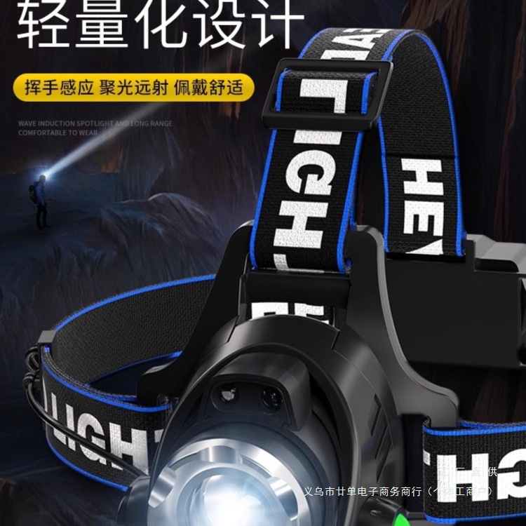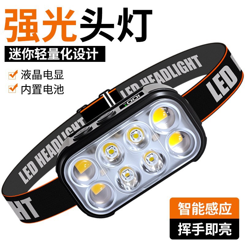 ヘッドライト、超高輝度、充電式ヘッドマウント懐中電灯、夜釣り、超長バッテリー寿命、リチウム電池誘導マイナーズランプ