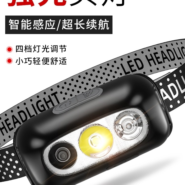 ヘッドランプ超高輝度充電式ヘッドマウント強力な光センサー超高輝度懐中電灯小型ポータブル夜釣りランプ