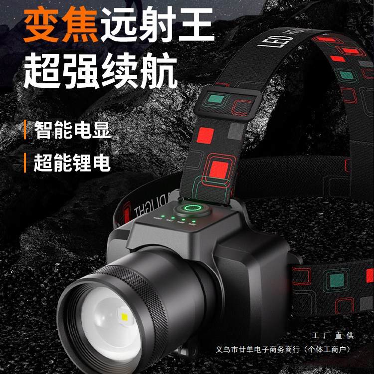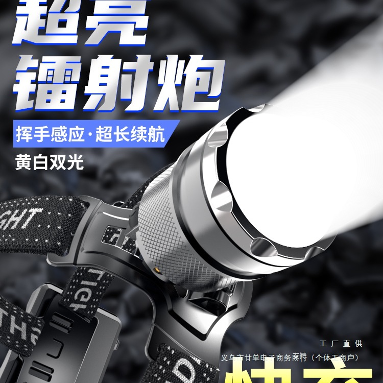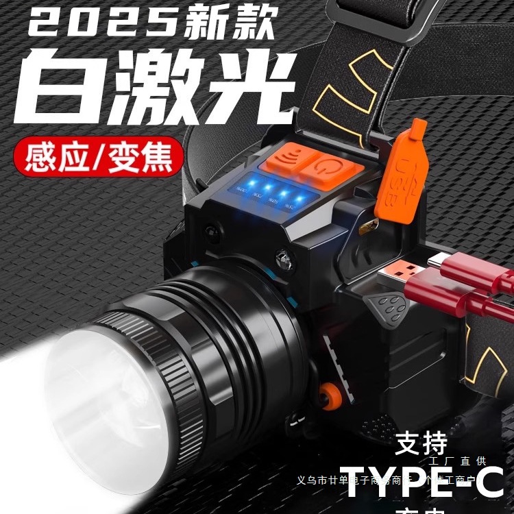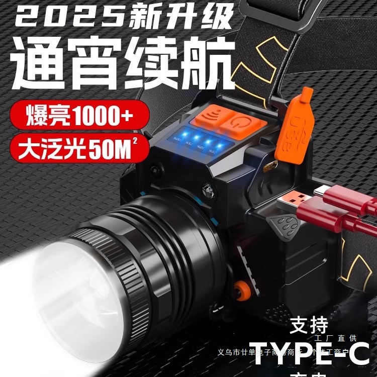 ヘッドランプ 2025 新しい強力な光超高輝度誘導超長バッテリー寿命ヘッドマウントズームハイパワー充電屋外登山