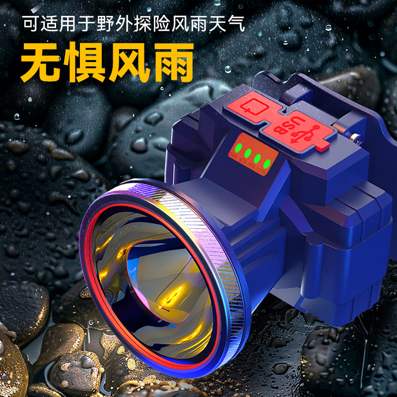 LED头灯强光充电夜钓鱼户外赶海手电筒超亮远射头戴式黄光矿灯厂