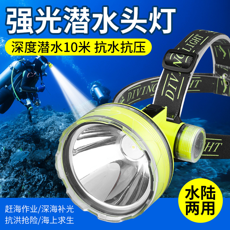ダイビングヘッドライト、海用特殊水中照明、強力な光、超高輝度補助光、充電式防水ヘッドマウントヘッドライト