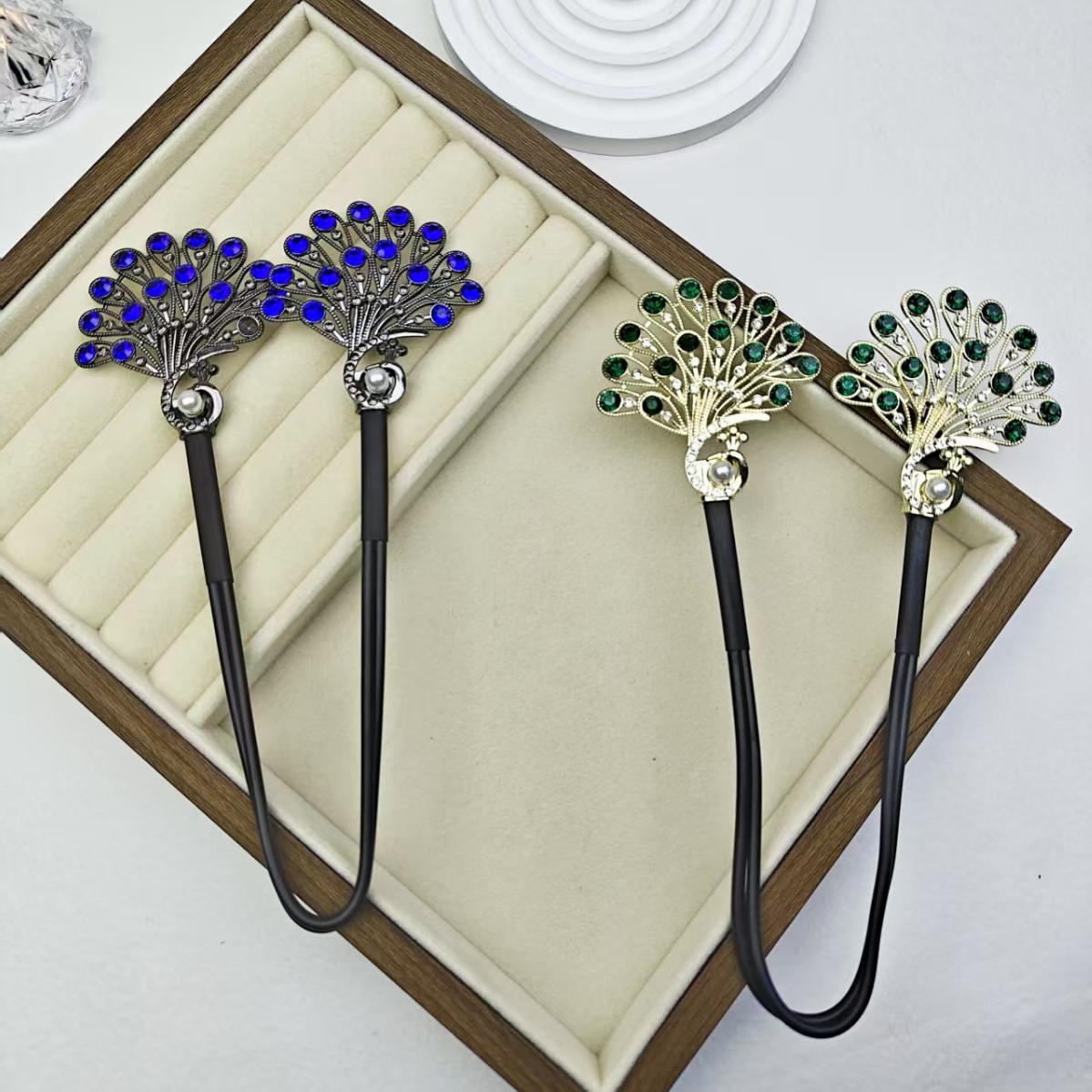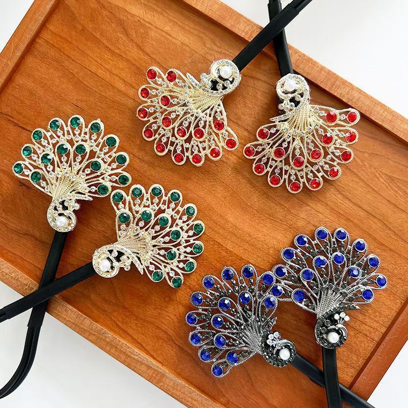 2025年新作孔雀の羽根飾り、後頭部のヘアアクセサリー、エレガントなツイストクリップ、マザーボールヘアクリップ、女性用