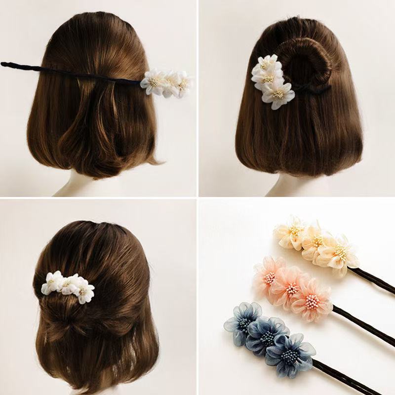 クロスボーダーミートボールヘッド、シンプルなヘアスタイラー、花柄ヘアスタイリングスティック、怠惰なヘアスタイリングツール、多用途ヘアフラワー