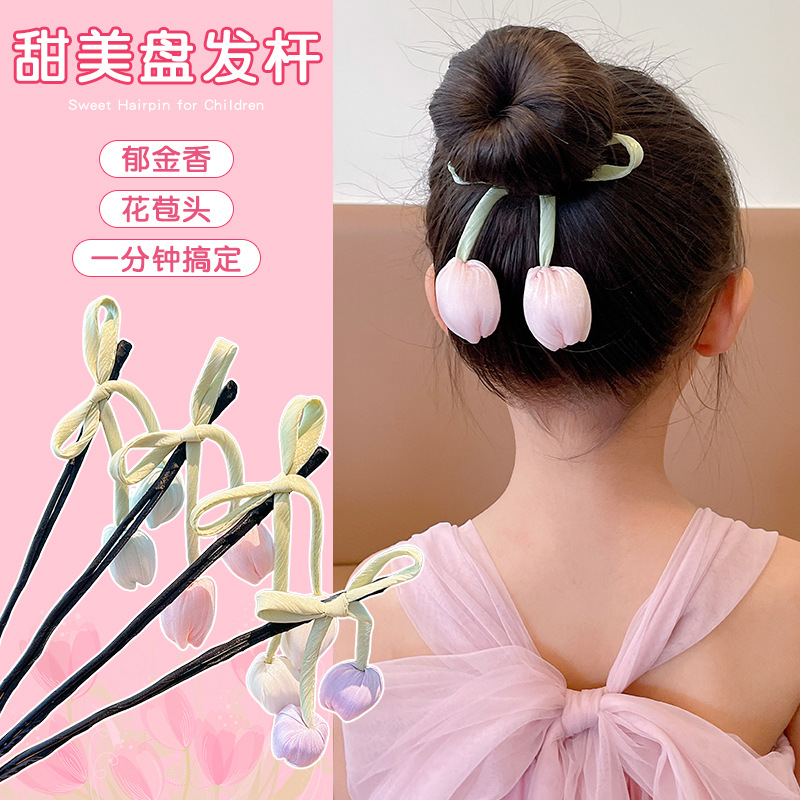 チューリップ子供用ヘアポール女の子漫画ヘアアーティファクト夏クイックインスタント怠惰なボールヘッド花のつぼみヘアアクセサリー