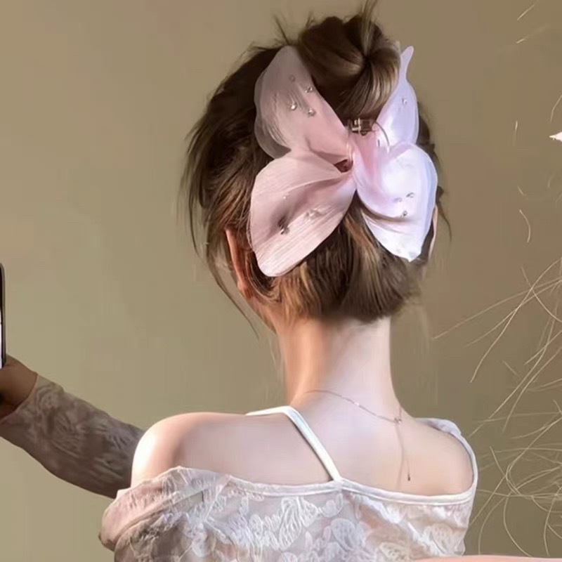2025 新蝶型マルチカラー大型クリップニッチ多用途夏メッシュ感覚後頭部サメクリップ女性用
