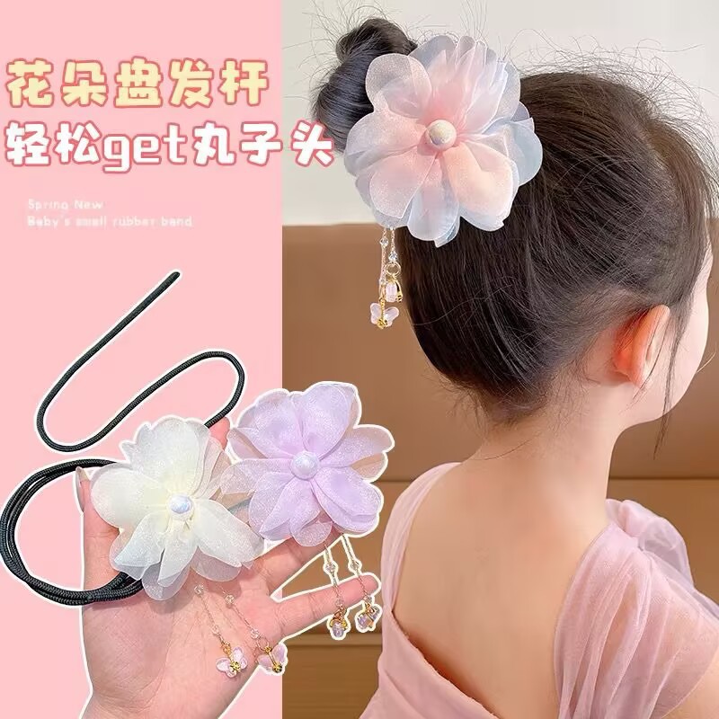 2025 新しい子供の花のつぼみヘアクリップ蝶結びヘアピン怠惰なツイストクリップ女の子ボールヘッドアーティファクト頭飾り