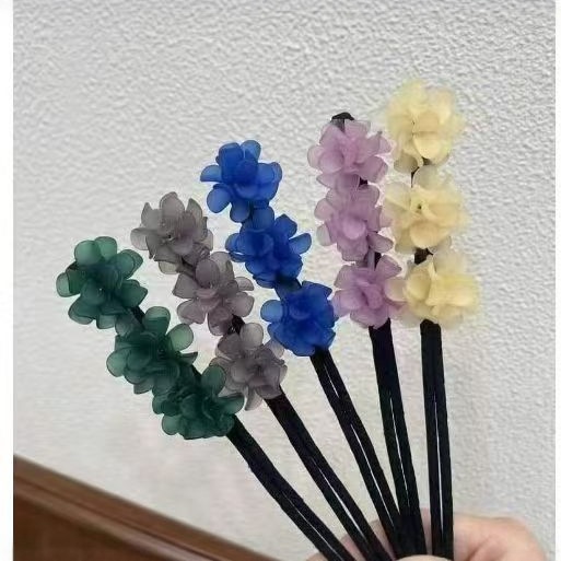 韓国 2024 スーパーフェアリーオーガンザフラワーボールヘアスタイリングツール甘い気質インターネットセレブ怠惰な編み込みツール