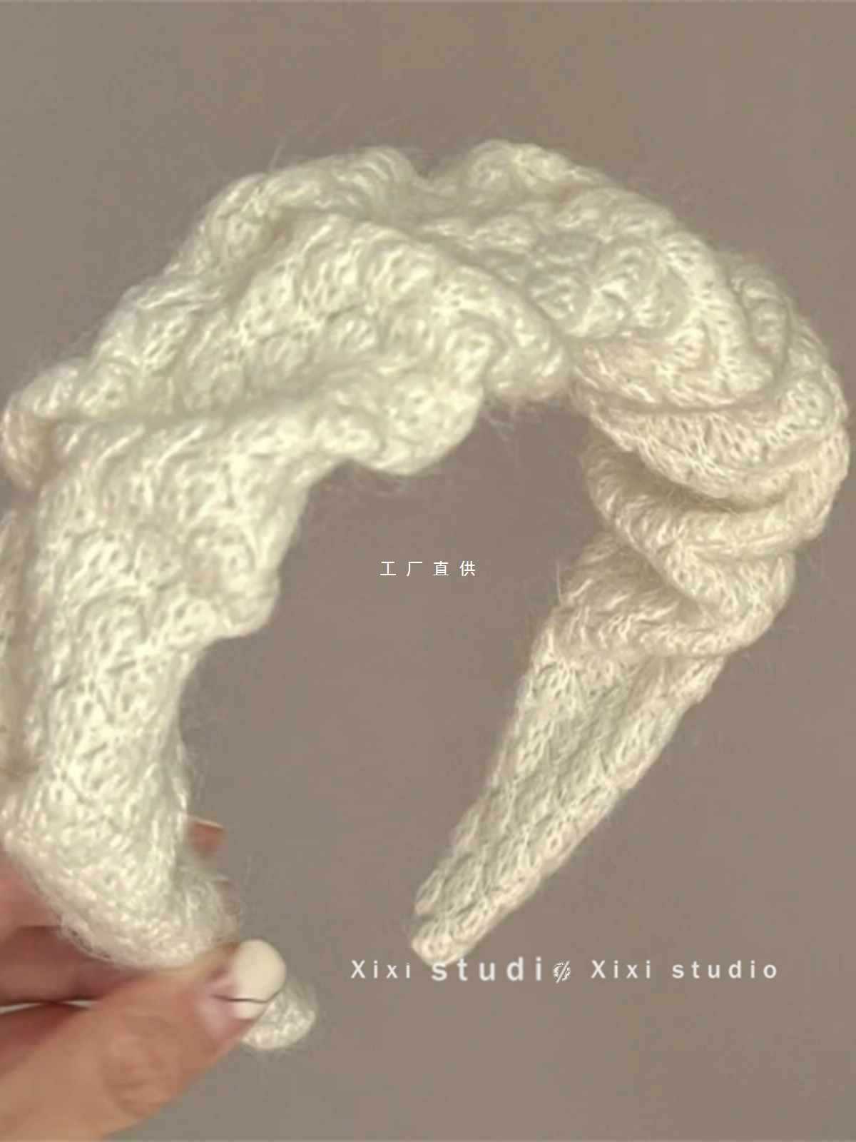 6E3Xが星を照らします!プリーツウールヘッドバンド!高頭頂部ヘッドバンド、優しいレトロなヘアピン、フレンチスタイル