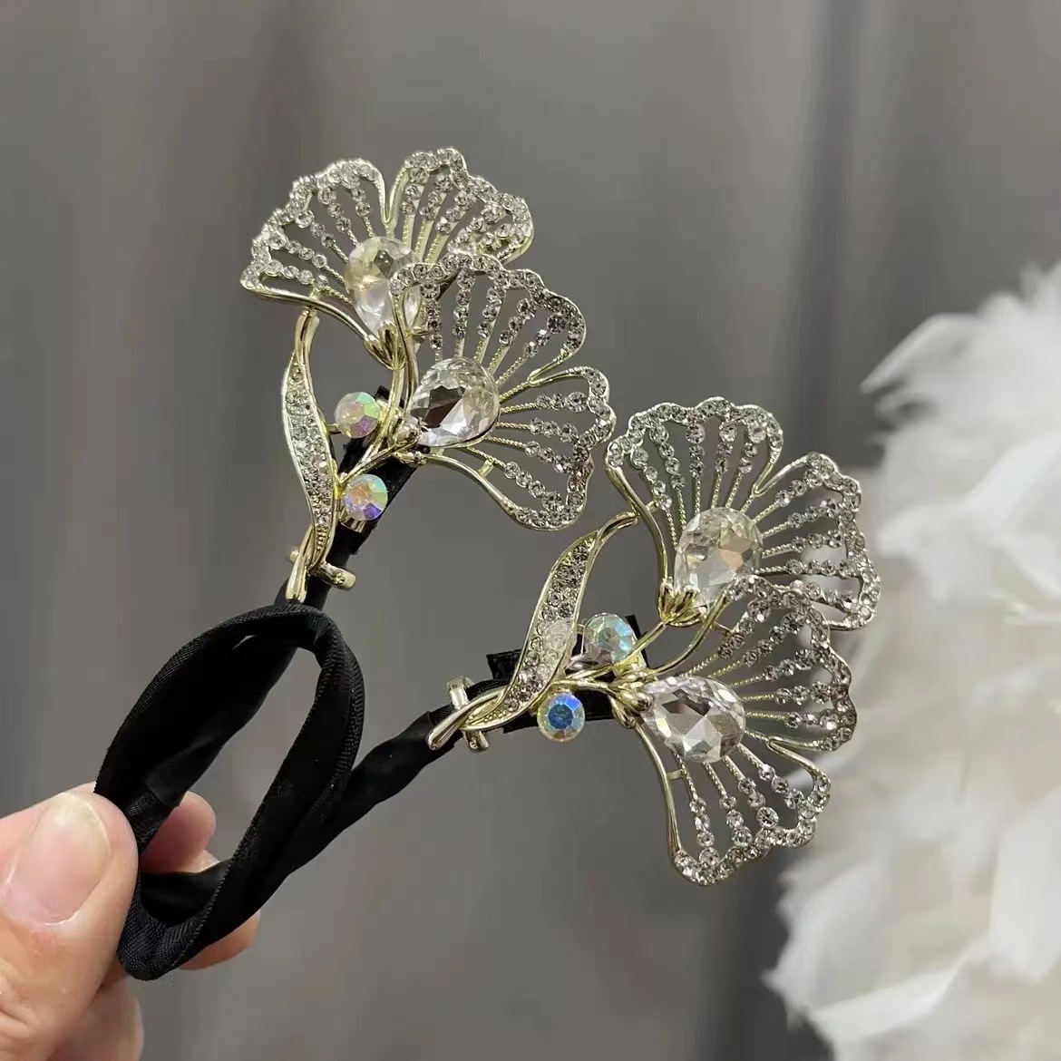プラチナシルバーイエローリーフヘアクリップ、女性用丸型ヘアクリップ、簡単ツイストクリップ、後頭部ヘアクリップ、中国風ヘアクリップ