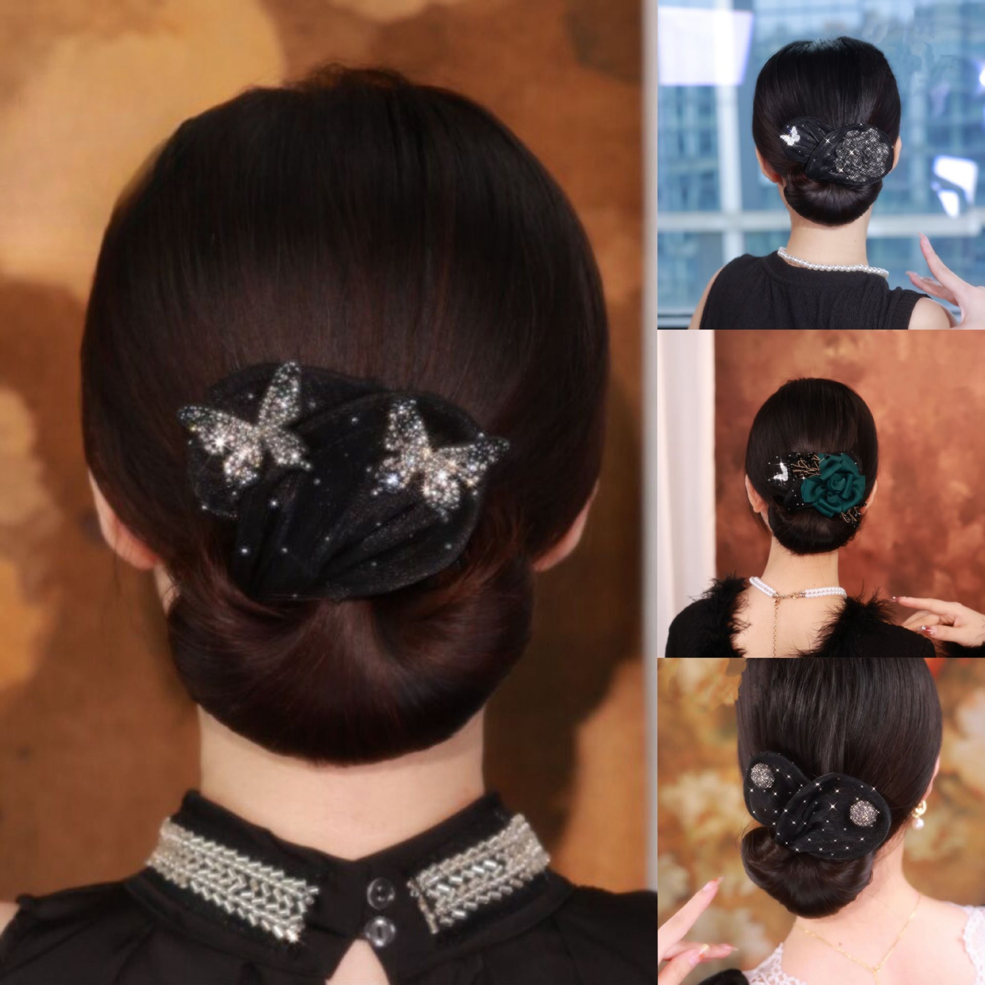 2024 新ヘアスタイラー女性の花ボールヘアツイストネット有名人の真珠韓国ヘアアクセサリー